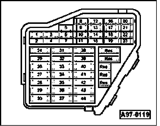 - Check wire connection from battery + (terminal 30) via Fuse for secondary air pump -S130- to Secondary Air Injection (AIR) Pump Relay -J299- (in relay- and fuse-carrier in E-Box, plenum chamber, position 3) for open circuit according to wiring diagram.