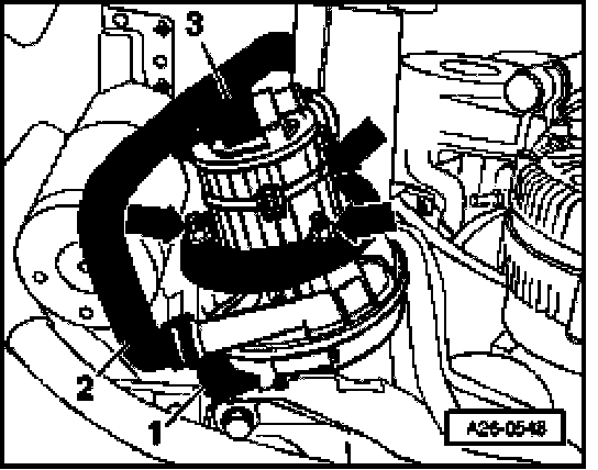 - Disconnect electrical harness connector -3- at Secondary Air Injection (AIR) Pump Motor -V101-.
