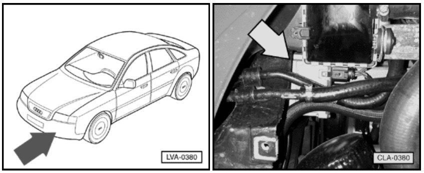 - In engine compartment, front lower left