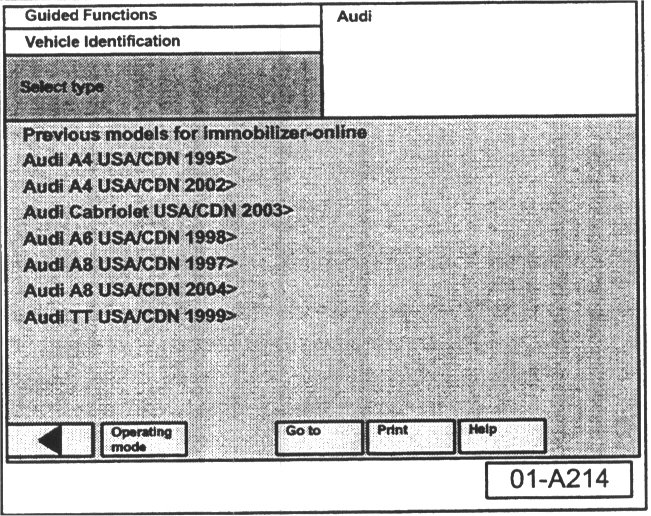 - Select type "Previous models for immobilizer-online" (May also say radio code).