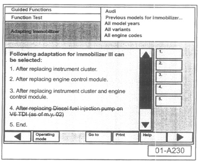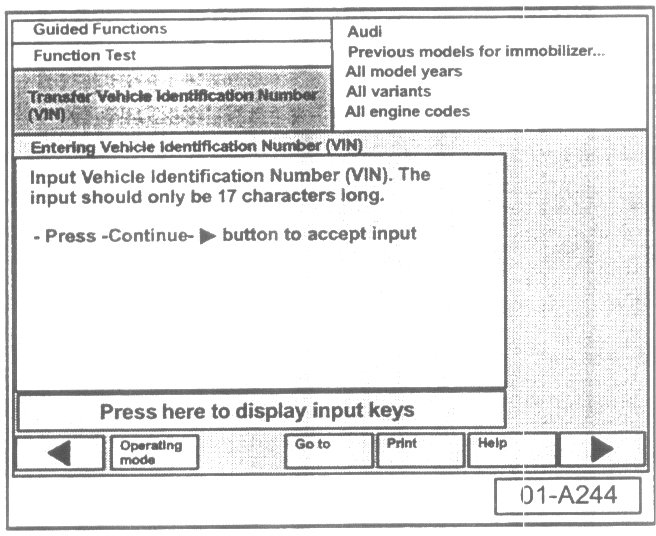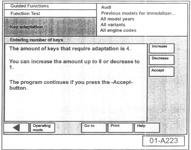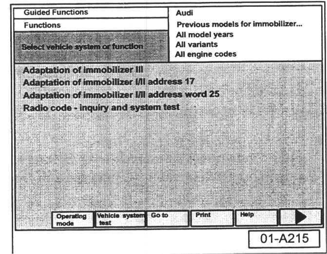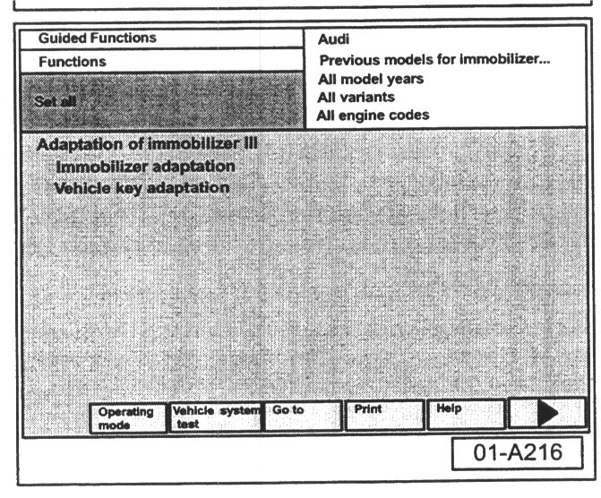 - Select vehicle system or function "Adaptation of immobilizer III".
