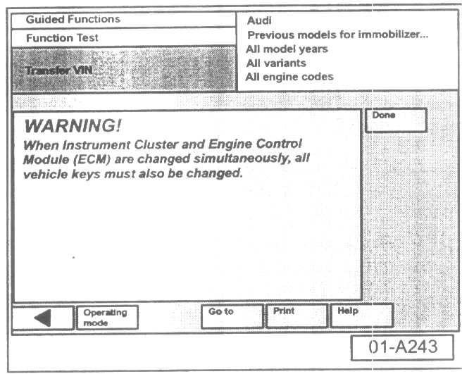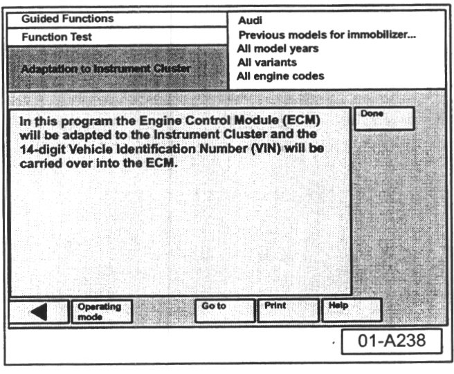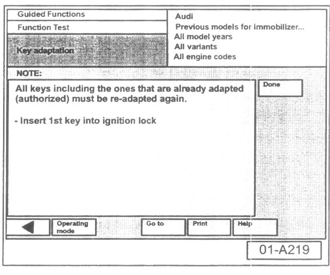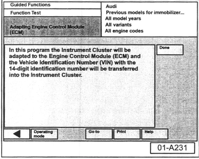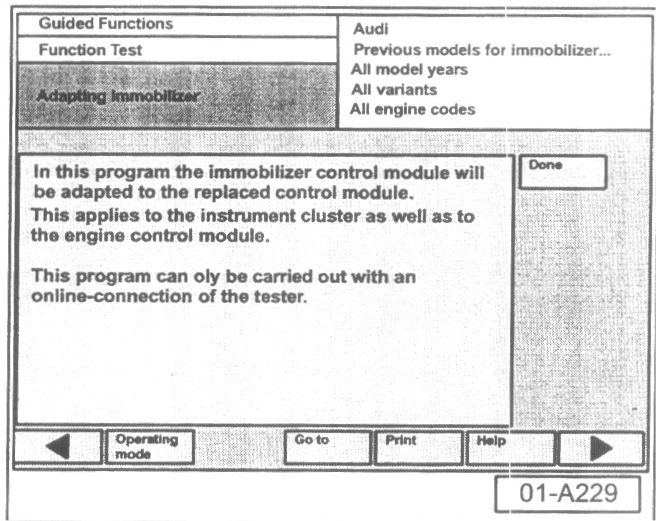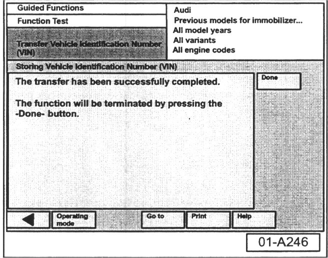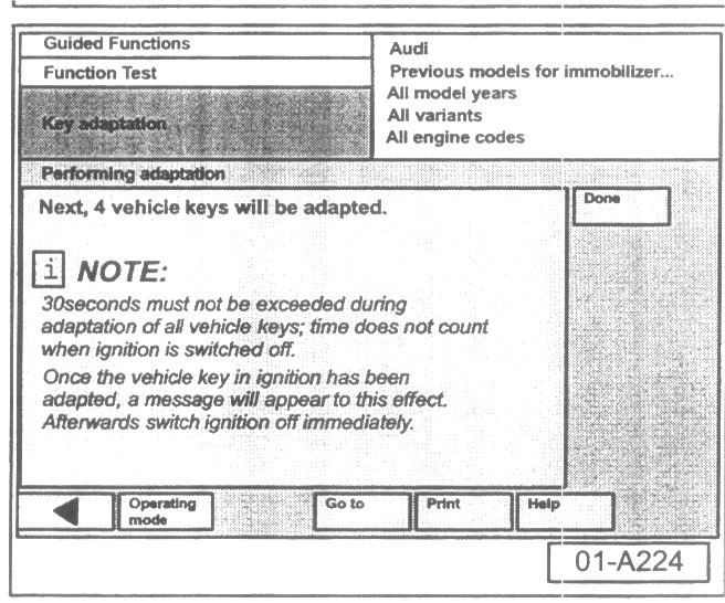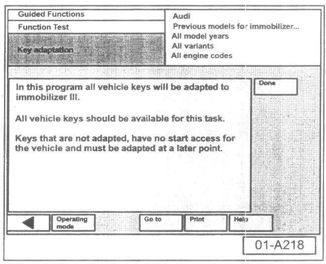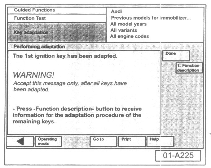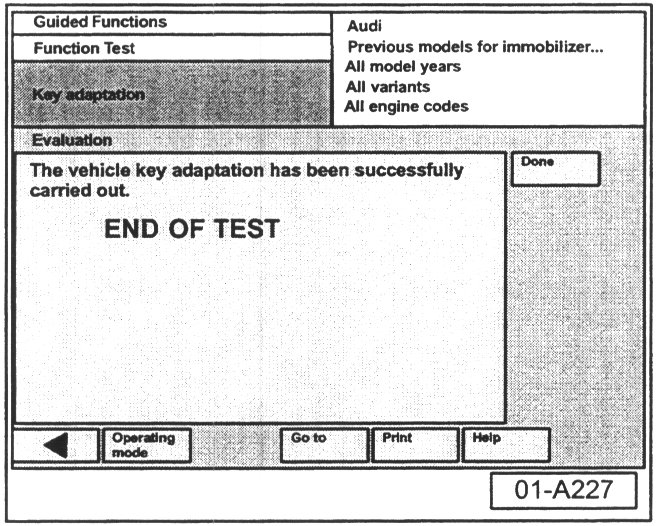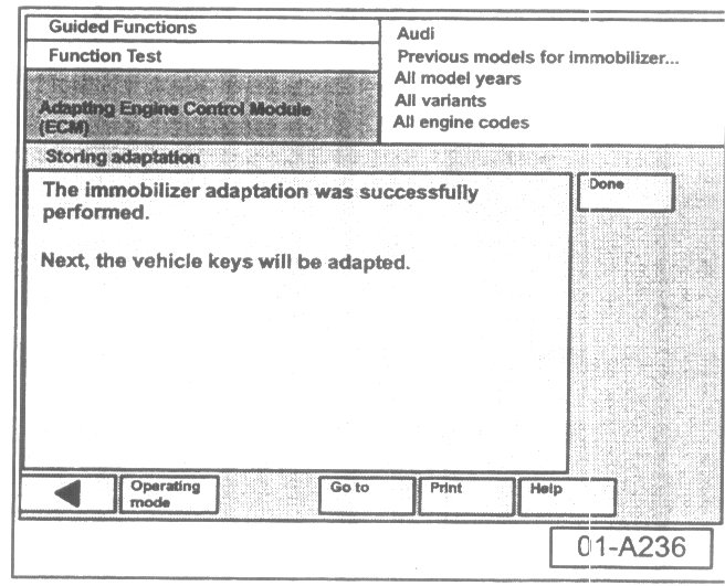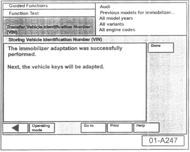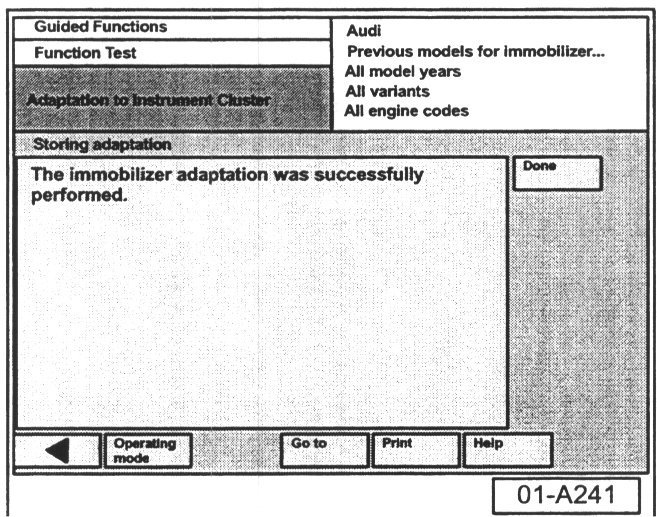 - Select "Done" button at immobilizer adaptation is successful screen.