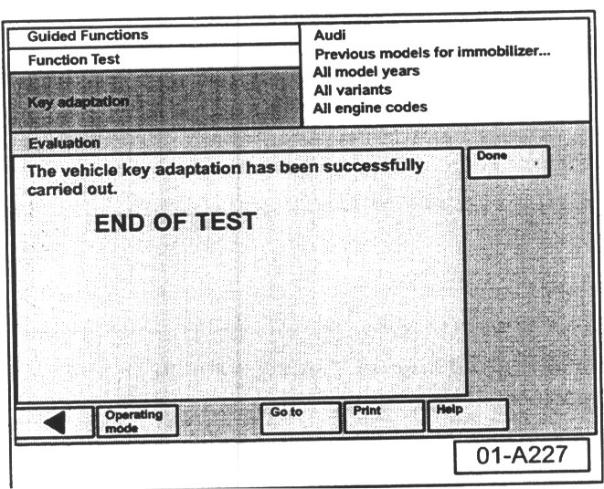 - After all keys have been adapted, "End Of Test" screen will be displayed.