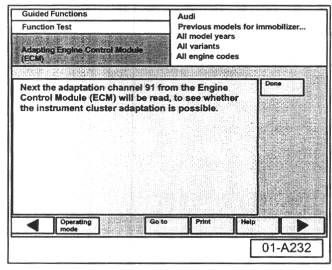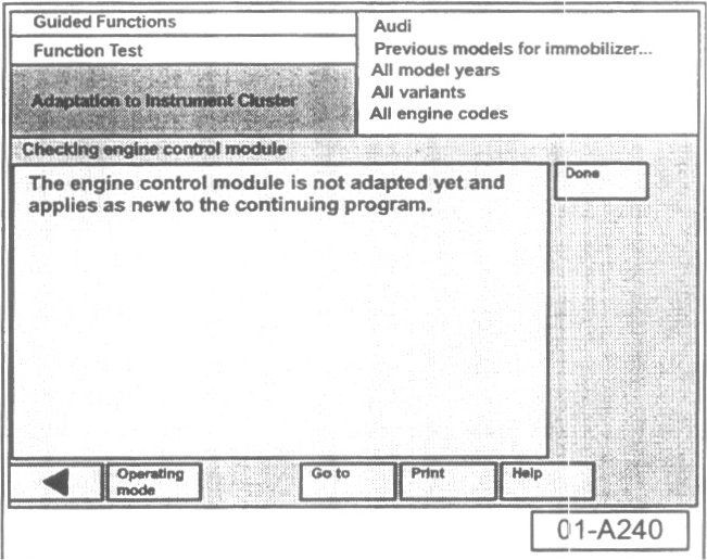 - Press "Done" button to proceed with instrument cluster adaptation.