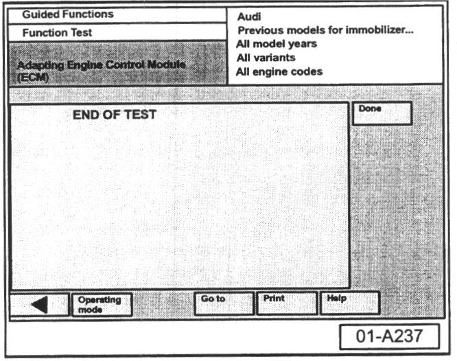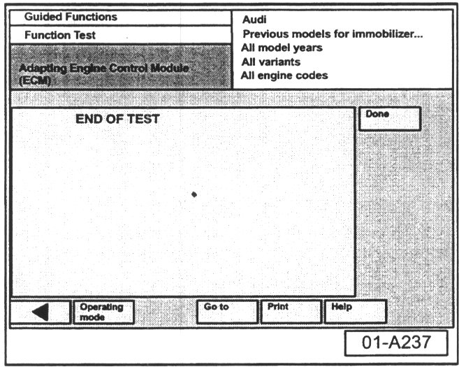 - After engine control module has been adapted, "End Of Test" screen will be displayed.