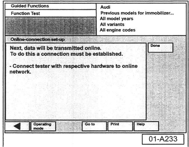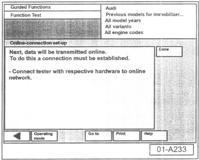 Note:For best results, connect VAS 5051 to the online connection before turning on (booting) the tool.