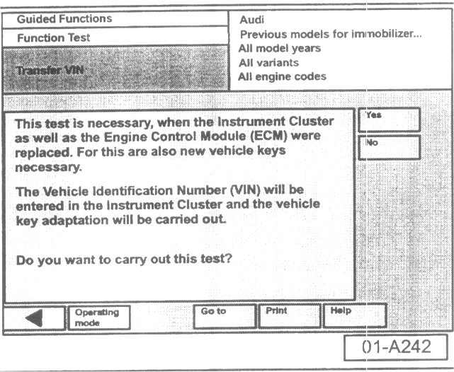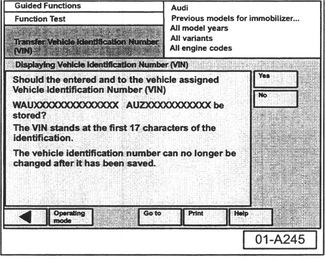 - Press "Yes" button to proceed with VIN transfer.