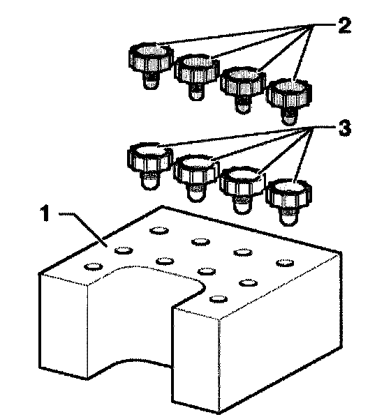 - After separating the hydraulic unit from control module, fit transportation protection - 1 - of repair set 1HO 698 311 A on the valve domes.