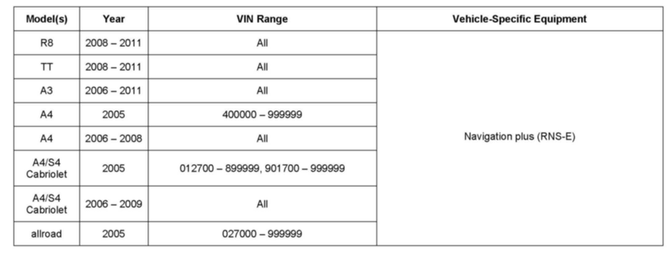 Affected Vehicles