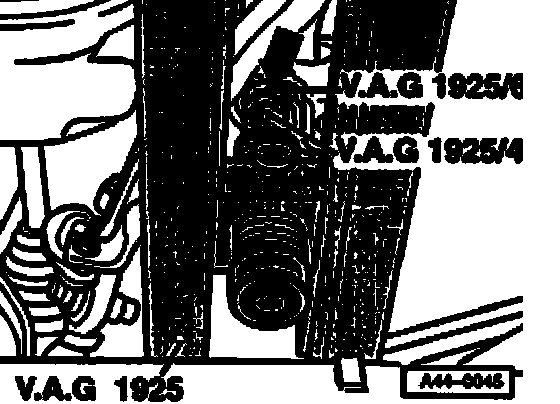 - Insert spacer V.A.G 1925 with adapter V.A.G 1925/3 or V.A.G 1925/4 and screw both threaded spindles out...