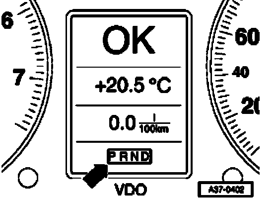 1 - The trouble code is stored and a substitute program allows the vehicle to continue to be driven (with some limitations). The driver is not alerted to this condition, since it is not critical to safety nor for the transmission. The transmission range display in the instrument cluster indicates as normal the particular range that has been selected (arrow). The driver may notice a difference in vehicle driveability and contact an authorized dealer.