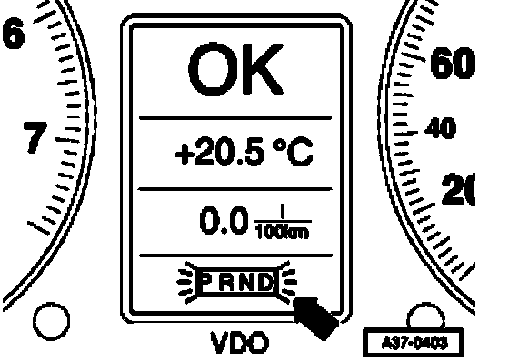 3 - A flashing transmission range indicator in the instrument cluster points to a serious malfunction in the transmission (arrow). The condition is critical to safety or for the transmission.