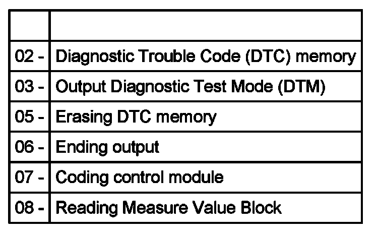 List of Selectable Functions, 01J CVT A/T FWD