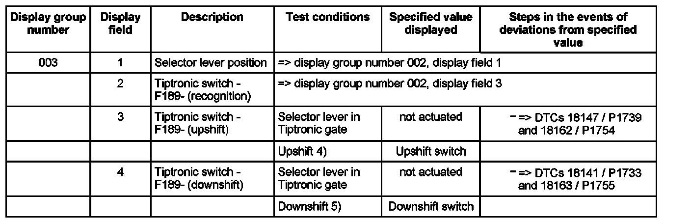 5) You must activate the downshift switch (-) by tapping the selector lever to the rear. On vehicles with multi-function steering wheel the downshift switch has to be activated by additionally tapping the lower left or right button (-) on the steering wheel.