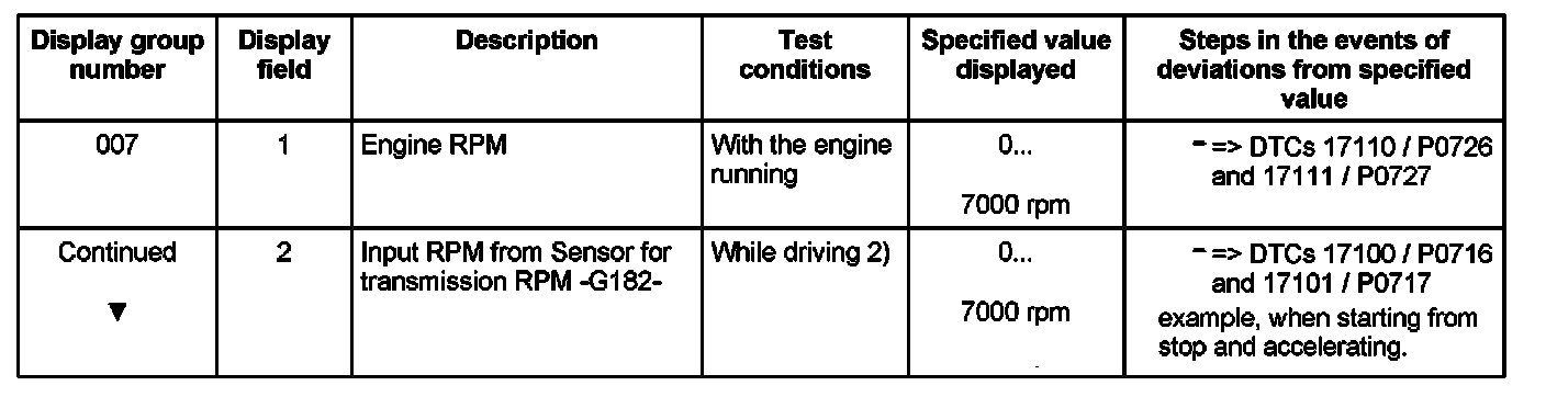 2) While driving a second technician is needed to read the specified values.