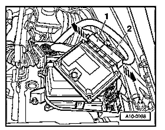 - Disengage connector catches (arrows) and disconnect harness connectors -1- and -2- from Engine Control Module (ECM).