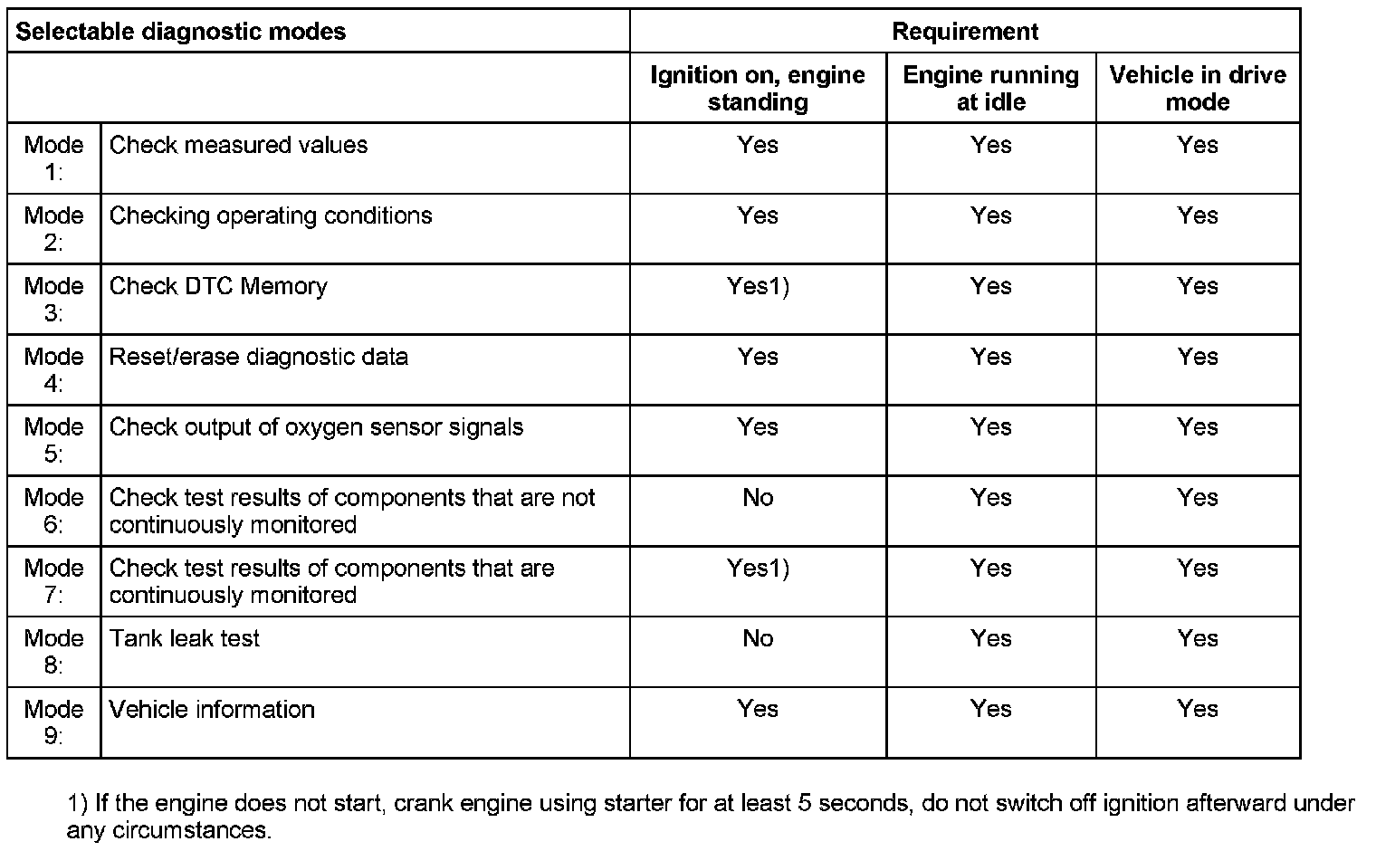 - The following diagnostic modes monitor all components and systems which influence the emission quality.
