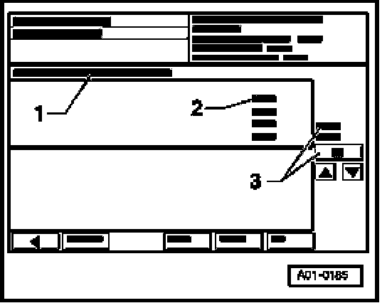 - Connect vehicle diagnostic, testing and information system VAS 5051 and select vehicle system "01 - Engine electronics" in selection. Engine must be run at idle.