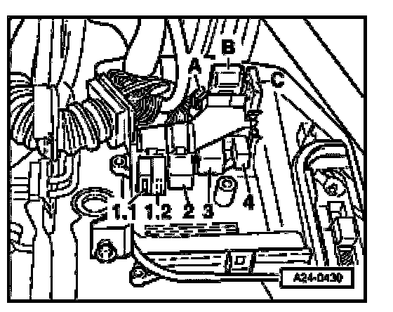 - Check voltage supply of Motronic Engine Control Module (ECM) voltage supply relay -J271-