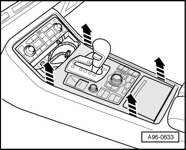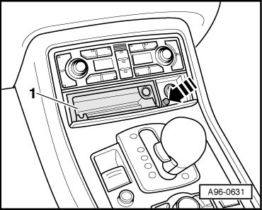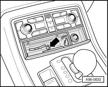 - Remove the front ashtray insert - 1 -, press button - arrow - to do so.