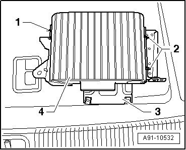 - Rotate the bracket - 3 - together with the digital sound system control module 2 - 4 - and remove the nuts - 1 - and - 2 - (3 Nm).