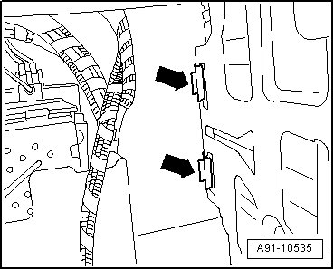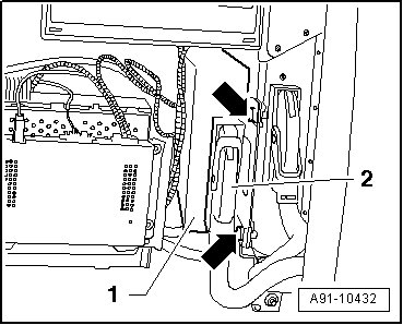 - Make sure that digital sound system control module engages correctly into retaining springs - arrows - on rear bracket.