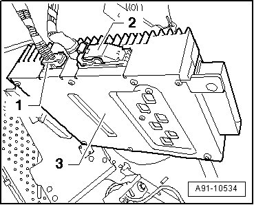 - Attach the (VAS 6223/9) - 1 - onto the MOST-Bus connector - 2 -.