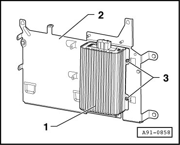 - Remove bolts - 3 - (3 Nm) on rear side of retaining plate - 2 - at digital sound system control module - 1 -.