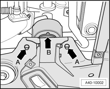 - Install the spacers - arrow B - between the subframe and the front transmission mount.