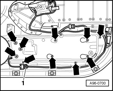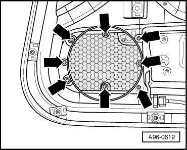 - Remove bolts - arrows - and detach storage compartment from door trim.