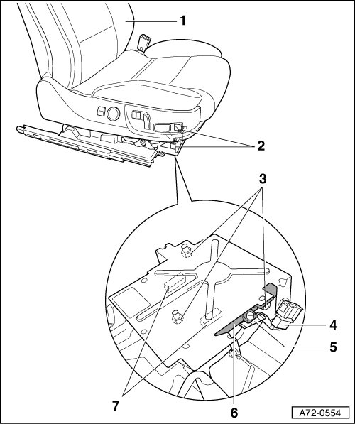 • For the emergency power supply for the seat forward/back and seat height adjustment motors => refer to => [ Emergency Power Supply Connector Coupling, Pin Assignment ] [1][2]Connector Views.