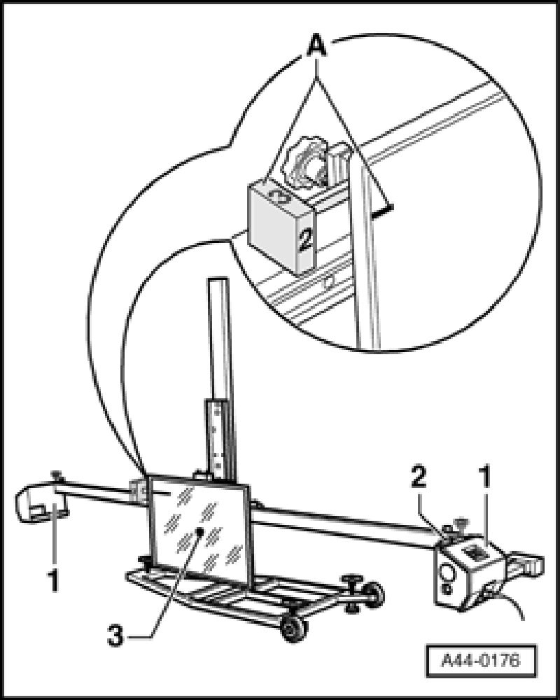 - Position VAS 6091 at distance -A- of 120 cm ± 5 cm from coarse adjustment device to mirror surface.