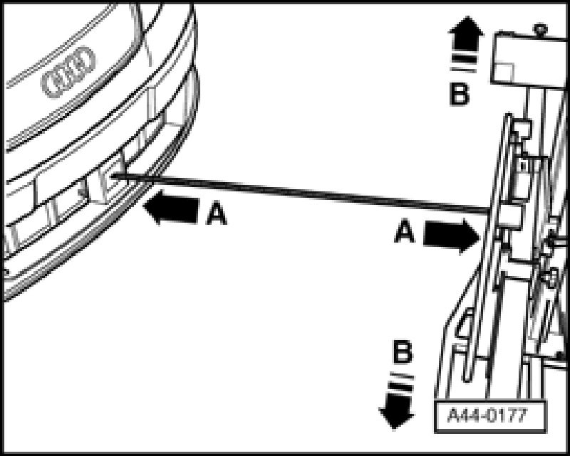 The ACC adjustment may only be set using a VW/Audi-approved wheel alignment tester and adjustment device!