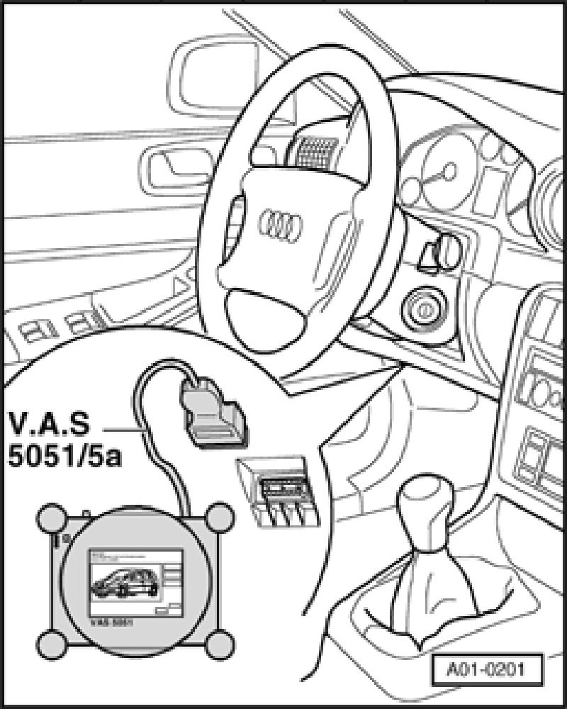 - Connect the VAS 5051/5a diagnostic cable connector to diagnostic connection.