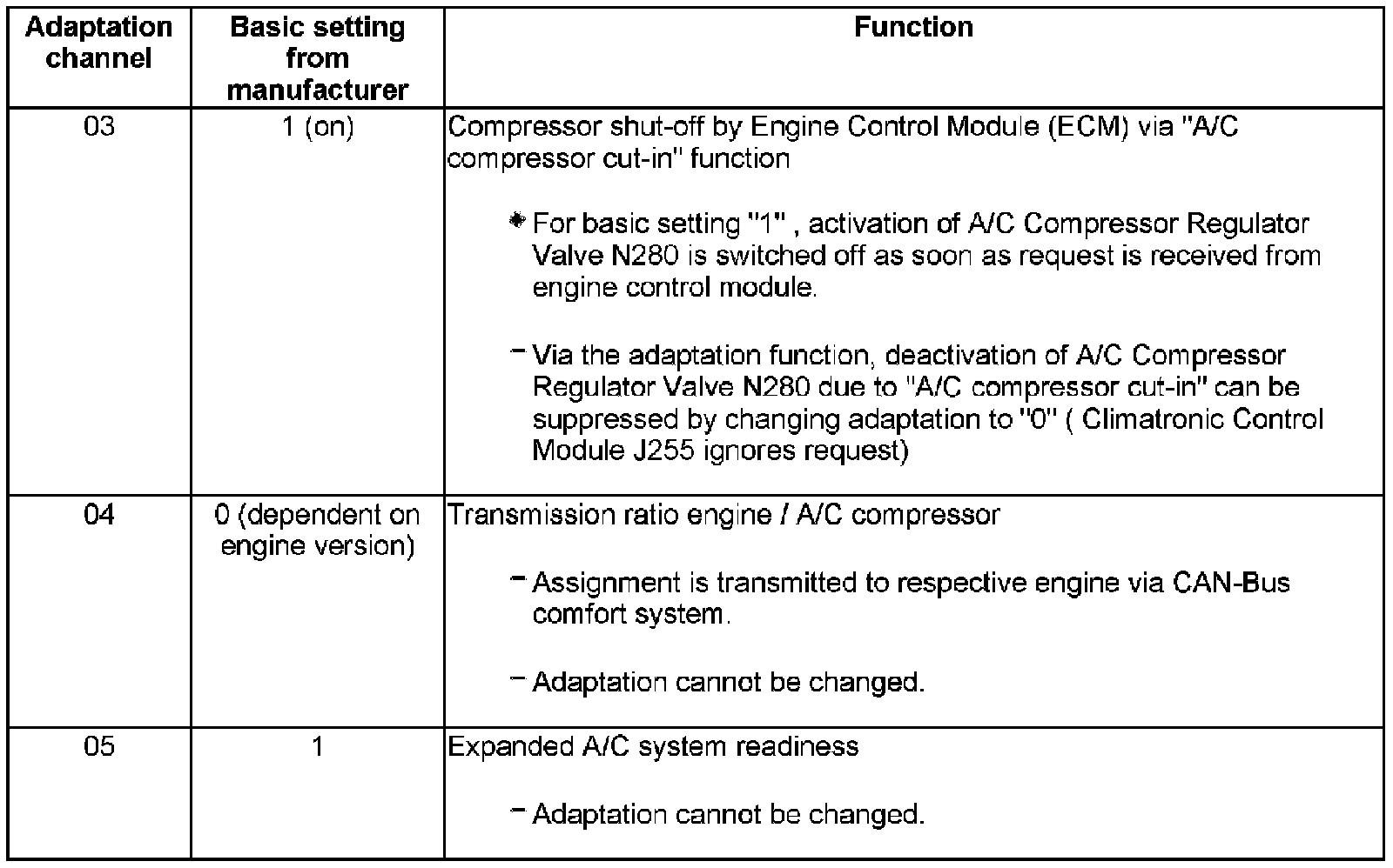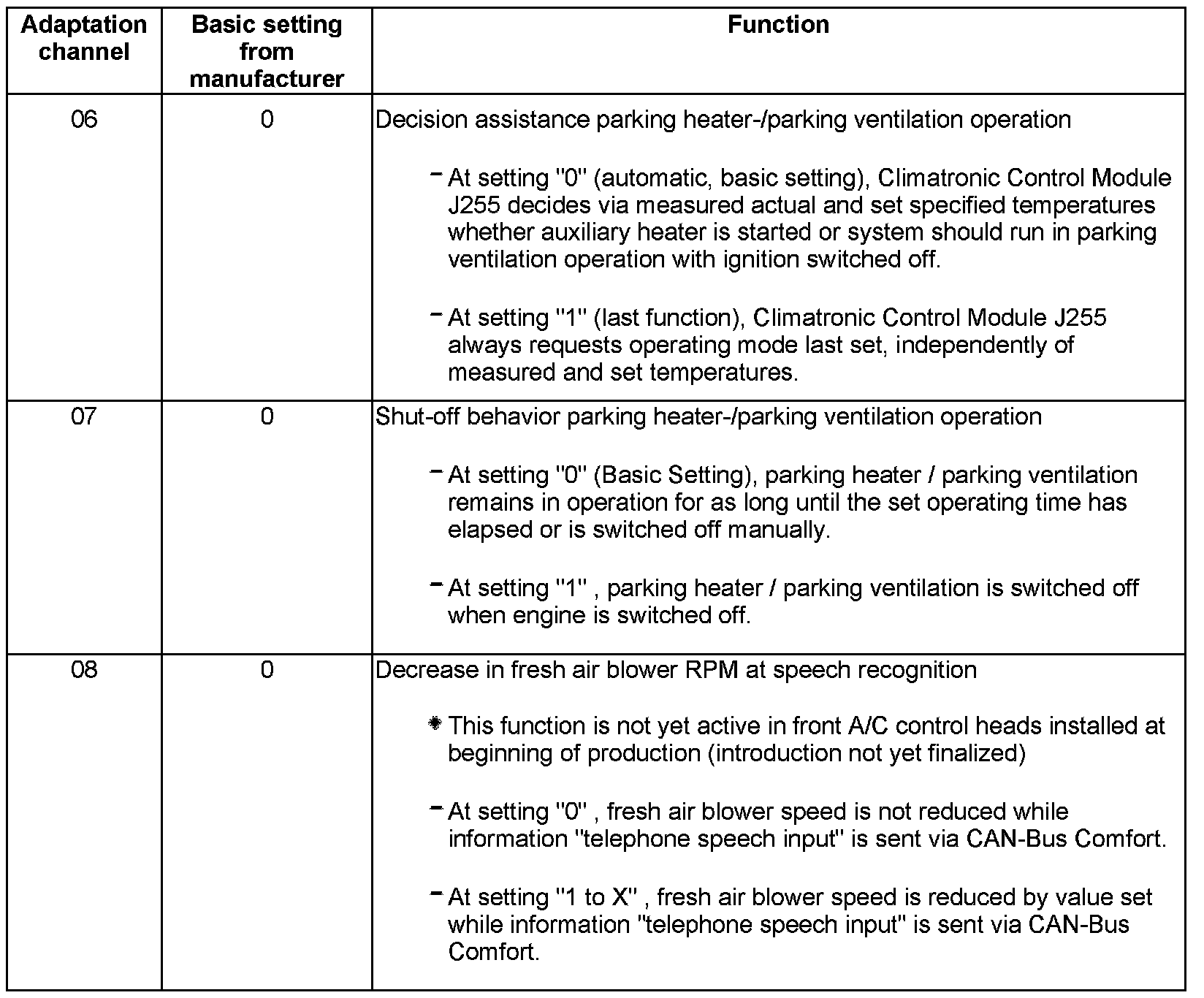 - Adaptation channels "22" and "23" are only reserved in , Climatronic Control Module J255 installed until approx. December 2002; adaptation of these channels can only performed with , Climatronic Control Module J255 installed as of December 2002 (gradual introduction at factory) Vehicle Diagnosis, Testing and Information System VAS 5051 in "Guided Fault Finding" function.
