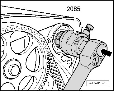 - To guide the (2085), thread the (2085/1) into the camshaft by hand until seated.