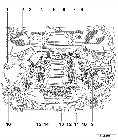 • Engine code BFM and BGK 4.2L, Intake air switch-over valve -N335- => [ Front view (engine code BFM and BGK 4.2L) ] See Image Below.