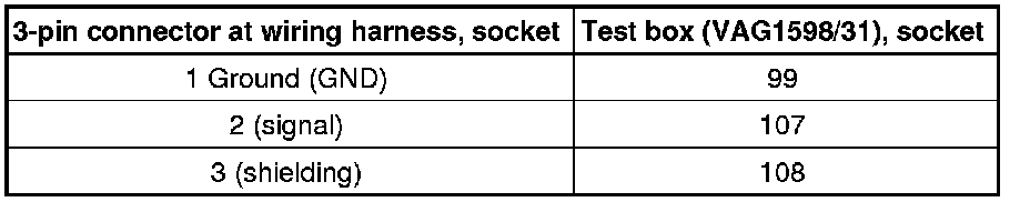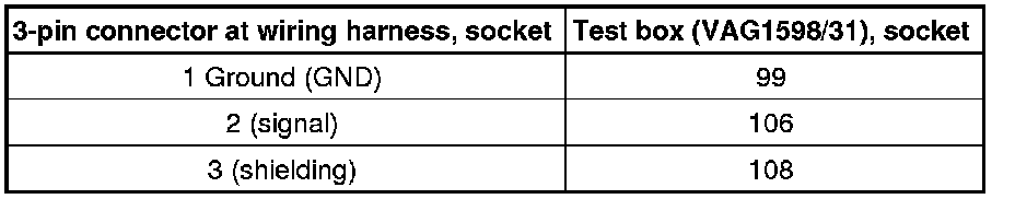 - Connect test box (VAG1598/31) at wiring harness to Engine Control Module (ECM), do not connect ECM.