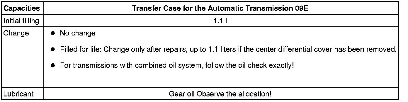 • Various types of gear oil are available for this transmission. These are allocated to the transmission codes.