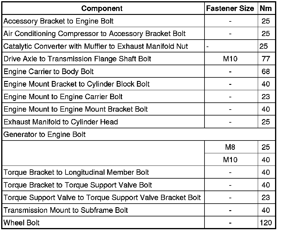 Engine/Transmission Bolt Tightening Specification