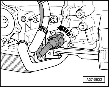 - Disconnect electrical connector on transmission. To do this, turn plug counterclockwise - arrow -.