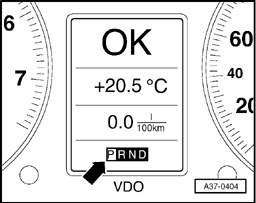 2 - The trouble code is stored and a substitute program allows the vehicle to continue to be driven (with some restrictions). The fully illuminated transmission range display in the instrument cluster shows the driver a simple malfunction (arrow). This malfunction is barely noticeable to the driver, but the brightly lighted transmission range display is intended to indicate that he or she should consult an authorized dealer as soon as possible to avoid subsequent damage in the transmission.