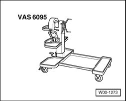 - Mount the fixture for seat repair VAS 6136 on the engine and transmission holder VAS 6095.