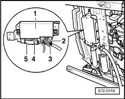 - Press in catches - 3 - (2x) and disconnect connector - 2 -.