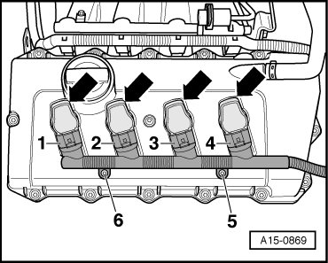 14 - Ignition Coils Cylinder Bank 2 -N323-, -N324-, -N325- and -N326- => [ Ignition coils with output stages ] See Image Below.