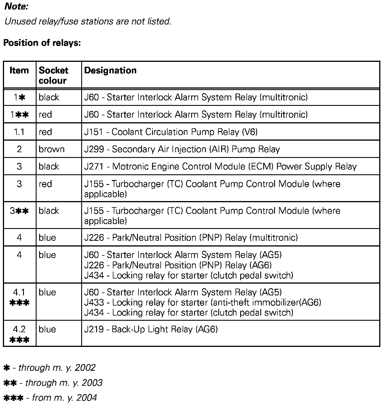 Position Of Relays:
