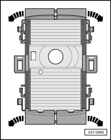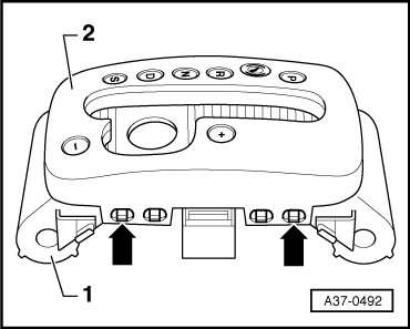 - Press the 4 lugs (arrows) inward and remove cover - 2 - from guide - 1 -.