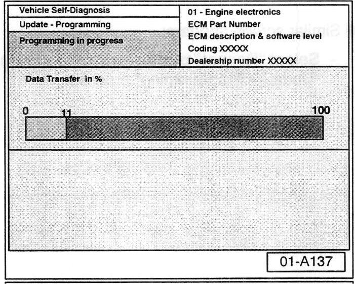 The previous data in the ECM is erased and the new data is being transferred to the module from the flash CD.