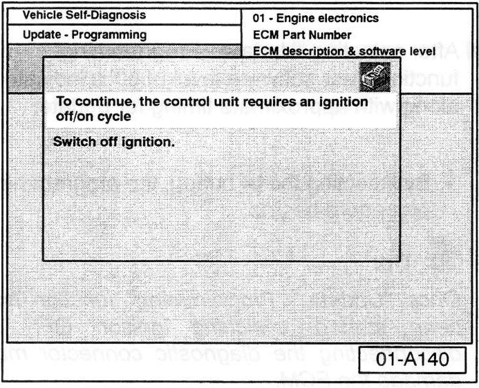 - Contact the Audi Helpline for further instructions, Programming the ECM cannot be performed.