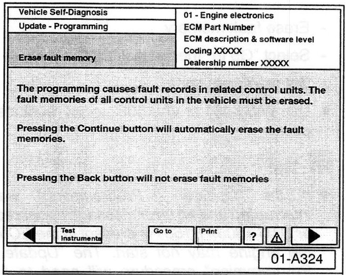 Fault memories, erasing after "Update - Programming" To erase ALL fault memories: